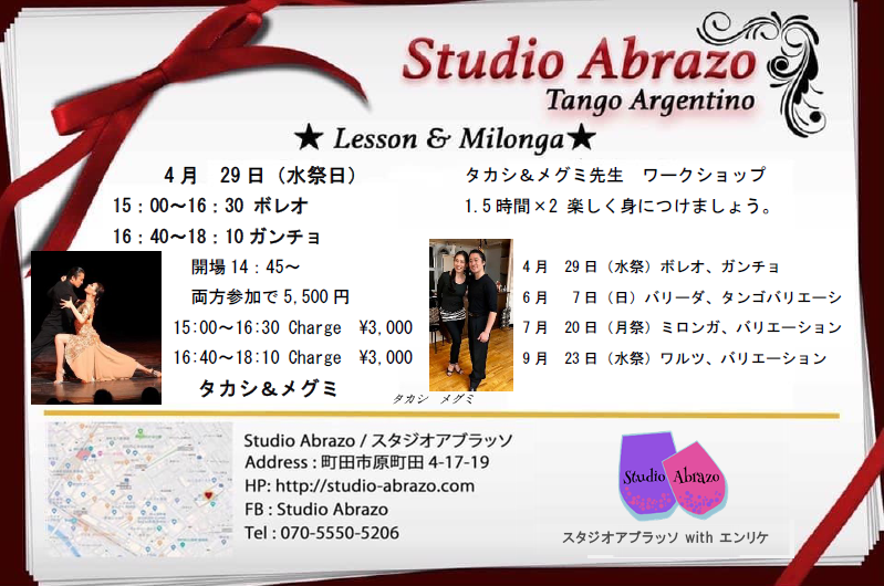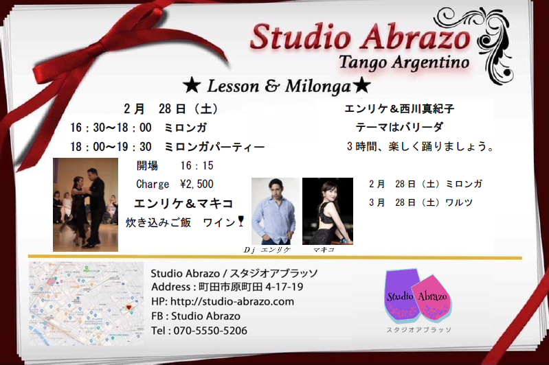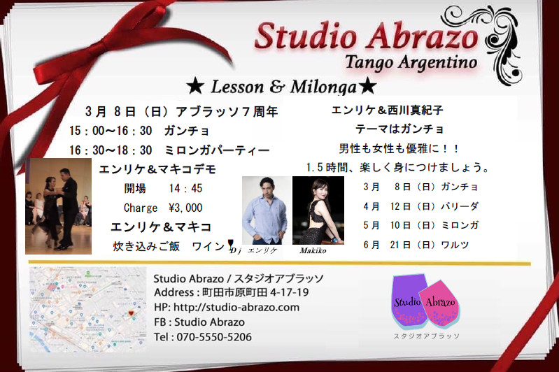 3月からパワーアップしたレッスンミロンガにご期待ください。