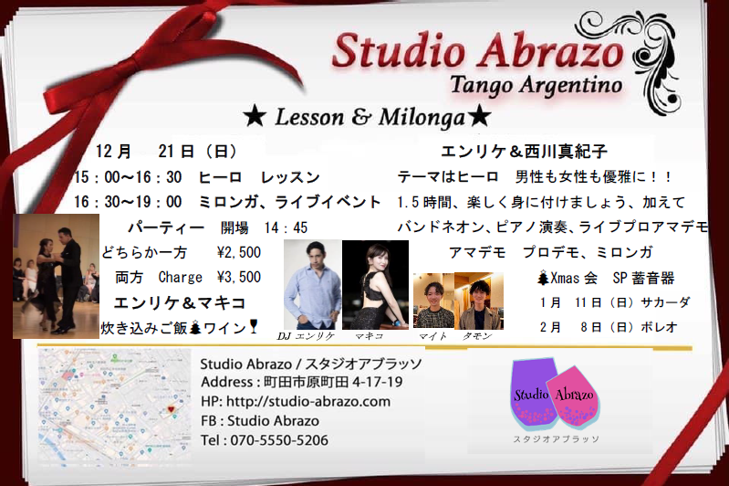 3月からパワーアップしたレッスンミロンガにご期待ください。